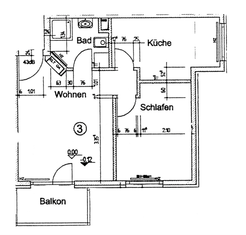 . Das Appartement mit 2 Räumen hat 46 m² Wohnfläche und